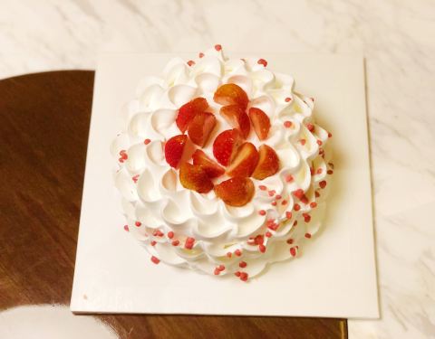 诺心的蛋糕也吃了好几年了。 以前经常吃的是环游世界或者拿破仑。 这次朋友生日试试网站颜值很高的草莓奶油蛋糕。 然而实物和网站照片有点买家秀和卖家秀的感觉。 草莓蛋糕还是好吃的。脆糖做点缀。 不是草莓季的草莓有点酸,但刚好中和了蛋糕的甜。 蛋糕胚很柔软,奶油不腻。