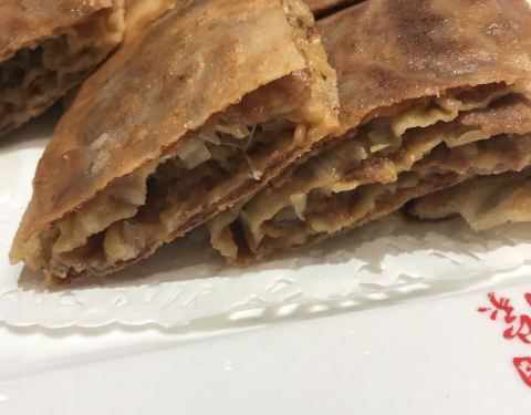 点的宫保鸡丁、开水白菜、豆瓣鱼等都很好吃,所以在离开北京前特地又去饭店吃了,这次点的峨嵋肉饼非常好吃