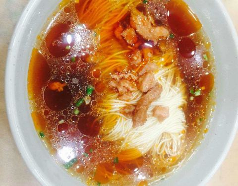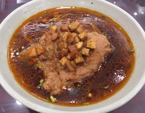 莘庄丽宝广场开了家很大的老盛兴 是我见到的魔都最大一家老盛兴了 面积大 品种也丰富 小吃 面条 盖浇饭 时令冷面 应有尽有 光收银台就有三名员工轮番 不过只能现金 貌似连刷卡功能都没有 更别提什么支付宝 单浇双浇 小笼生煎炸猪排 却没发现锅贴的身影 位子多 随意坐 拼桌难免 桌上有桌号夹 坐定后叫服务员 等食物吧 要了一份 大排三丁面 17元 属于双浇面 苏氏细面 红汤底 有三丁的微微甜辣 三丁里有豆腐干肉丁笋丁 笋丁放的极好;大排微微裹了面粉 但肉质细嫩 感觉也是调味过的 略带甜味 午市生意爆好 堂吃坐满 打包的也多