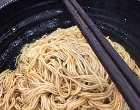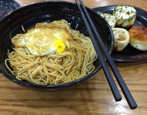 话说他的葱油拌面真是很好吃。葱煎得很香,应该不单单是用酱油拌的,味道比较特别