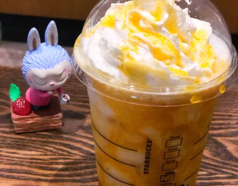 Starbucks杨枝甘露星冰乐,星冰乐的标准造型~暖暖的黄色让人看了食欲大增呀! 这款是今年夏天新上架的星冰乐,融入港式最具特色的甜品,杨枝甘露做出的西式饮品,喝起来口感很丰富,因为加了奶油和芒果肉哈!搅拌一下再吸口感更佳哦! 喝起来还是有点甜腻,喜欢喝咖啡的可以再喝一点咖啡中和下。 我记得是42元,正好在家的抽屉里翻到一张星巴克的饮品标准杯抵用券,所以就付了升级的钱哈哈,大概就三块钱吧,对我来说性价比很高了!