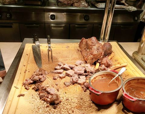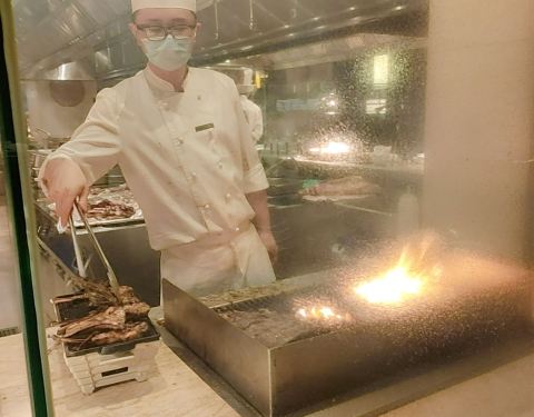 环境5星,食物3星。牛排,羊排,蟹,虾,小龙,三文鱼,蛮多了巧克力蛋糕 还可以。每位178。全部都是老年人在消费。年轻人好像不喜欢这种食材。