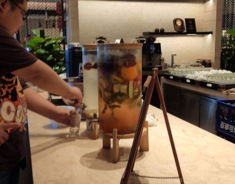 这是在五星级餐厅里面的自助餐,这家自助餐厅的面积还真的是特别大在酒店的七楼这里的人气特别的火爆,大家一定要记得需要提前预约,我就直接过去是没有位置的家餐厅的服务员的态度也特别好,及时帮你清理果盘,还有各方面的一些支持。