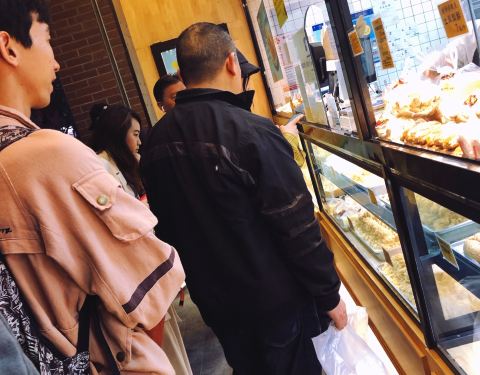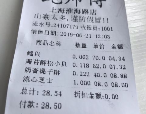 没有之前那么火爆,但是每天还是会有几个人在排队,的确很好吃的呀,海苔肉松最喜欢了。算了一下价格,大概3块5毛钱一个。他们家还有别的很多点心呢,