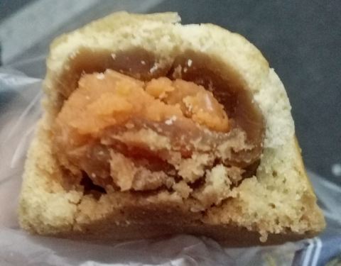 从江苏路地铁站出来,方向是沿着江苏路走到延安西路上去的,没成想刚刚一过马路,就看到了鲍师傅在夜晚下分外明亮的招牌,还有排队并不是很长的人群。 鲍师傅最网红的时候,我从来没有为它排过队,吃过的鲍师傅也都是拾人牙慧,如今看到这家门前排队的人并不是很多,自己也不赶时间,于是加入了排队的队伍。 排队的时候研究了一下鲍师傅的菜单,把目标锁定在他家新出的几款新品上。 鳕贝,相比其他小贝都是圆鼓鼓的身体,它比较扁,小贝表面的肉松也很稀疏。鳕鱼肉是和小贝混合在一起,而不是作为内馅存在的,这大概也就是鳕贝不那么园的原因吧。即便加入了鳕鱼,小贝的口感还是偏甜的。 柠檬酸奶酥松小贝,和鲍师傅普通小贝一样,就是馅料不同,不过说实话,这个味道挺一般的。 老蛋糕,本来没打算买这个,不过看到前面几个都买了,于是买了一袋,蛋糕很实在,味道还不错,但也就如此而已。