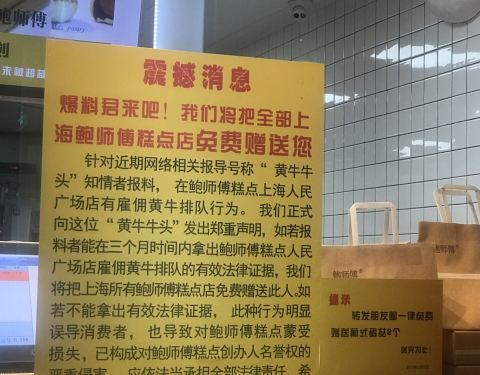 久仰鲍师傅大名,也一直经过江苏路这家鲍师傅,一直怀疑真伪,因为外面山寨的太多了。今夜再起骑车路过,特来一探究竟,看照片和布告,应该是真鲍师傅。买了两个海苔肉松小贝,回家尝了尝,跟苹果花园的其实都差...久仰鲍师傅大名,也一直经过江苏路这家鲍师傅,一直怀疑真伪,因为外面山寨的太多了。今夜再起骑车路过,特来一探究竟,看照片和布告,应该是真鲍师傅。买了两个海苔肉松小贝,回家尝了尝,跟苹果花园的其实都差不多,谈不上好吃难吃,反正适合自己的口味就是好吃。公告栏也写得很诚恳,作为小老百姓,转发朋友送两个蛋挞的促销还是挺有诱惑力的。