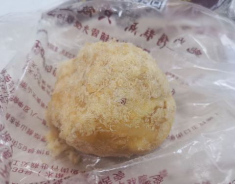 鲍师傅蟹黄酥松小贝,duangduang的蛋糕上沾满了肉松,看上去圆fufu毛茸茸的~蛋糕内是鲍师傅自制的色拉油。说是有蟹黄,但我没吃出来哈哈~感觉很鲜美!公公说这款比海苔的好吃~层次分明的小贝,味道很不错!作为早餐有点腻,下午茶不错哦!搭配茶水更棒!算下来四块多一个吧,还是很划算啦~