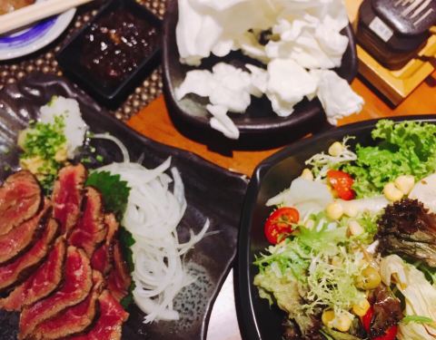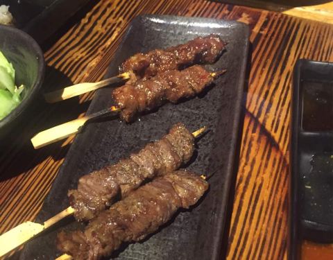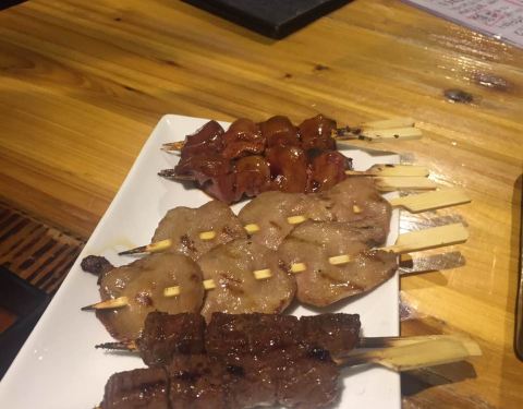 看人家说很好吃,特地来吃,果然真的很好吃[捂脸],可惜楼上2楼洗手间味道太重,建议选一楼。 一定要吃烤串,而且他们家烤串是放在每桌的小火炉上的,不用担心烤串冷掉不好吃的问题了。 牛肉的吃了2款,腹心肉和牛舌。腹心肉可以达到入口即化的地步,不信你试试。 还有惊艳到我的是他们家的鸡胸肉,嫩到怀疑人生,因为鸡胸肉在我的字典里跟“柴”是挂钩的,肉老,这家完全不! 色拉也好吃,感觉油醋汁儿跟别家的不一样,要配方,人家不给[笑哭] 印象深刻的还有杏仁豆腐,好久没有吃到这样一种细腻均匀适宜的杏仁豆腐[嘿哈] 拉面小份特别适合吃了很多串串的我们。