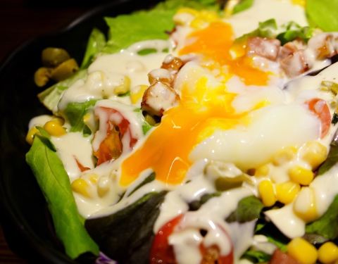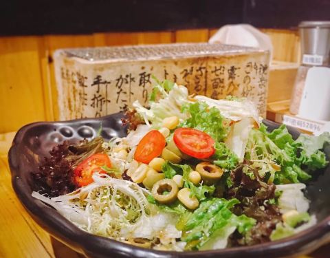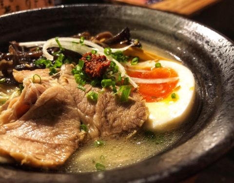 威宁路仙霞路这一带居酒屋遍地,味道都差不多吧大同小异。喜欢大志,所以爱屋及乌对小大志也存有些许好感。 墙上贴着海报,陈列各种价位的清酒,居酒屋画风一贯如此。待夜幕降临,店里逐渐热闹起来,上菜速度也开始变慢。 烤物系列挑了自己爱吃的鸡软骨和牛舌,软骨脆脆的很有嚼劲,牛舌火候适中,又香又嫩。 火山烤肉块几乎桌桌必点,五分熟肉色娇嫩。蘸黄油的吃法令我的罪恶感徒生,铁盘上的土豆泥更是浓香绵密,好吃到停不下来。 凯撒沙拉很大份,温泉蛋戳破内心暗爽,爽口的绿叶菜一解烤肉带来的油腻。 极上豚骨拉面是两种吃法,先喝汤吸面,再把米饭倒入。汤底厚重,稍微有些腻,叉烧肉肥厚的一大片,调味咸了点。溏心蛋是加分项哦,我的最爱。