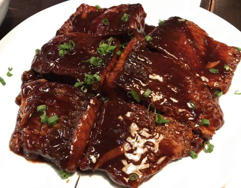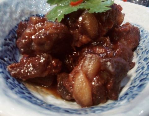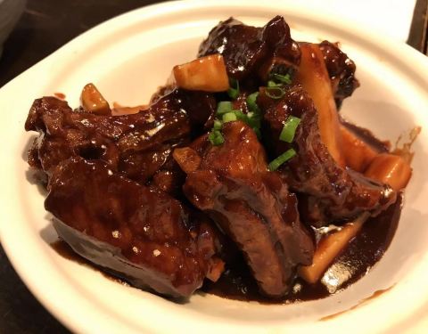 - 排骨年糕,甜咸口,很入味,烧得也很懒,容易脱骨,个人口味偏淡,所以这个菜对我来说偏重了