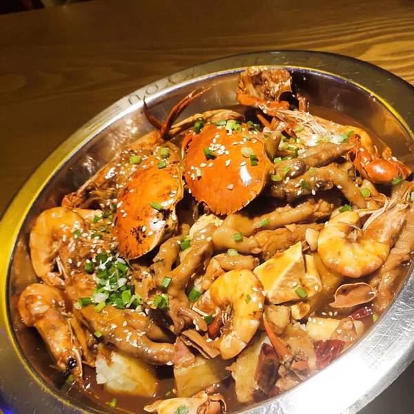 新奥中心有个美食一条街,很适合聚餐。这家吃的特别有味道,汤汁入味,螃蟹,大虾,鸡爪,土豆什么的,放在一起炖,各种味道混合搭配,大虾开过背,很干净。螃蟹也新鲜,鸡爪软糯,搭配各种蔬菜,再搭配蔬菜沙拉...