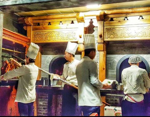 - ...,楼下有充足的停车位,这家店的面积挺大,装修比较上档次,烤鸭外酥里嫩鸭饼柔软,贝勒爷烤肉味道正