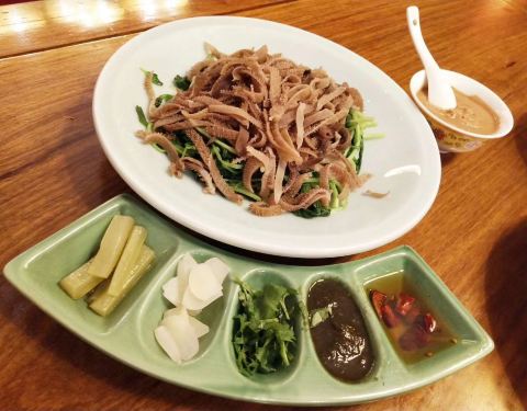 请深圳来的朋友吃饭。想来想去,选择了那家小馆。很有特点的装潢,北京菜。我们四个人点了黄坛子,茄子,糖饼和酱爆猪肝等。首先推荐的就是黄坛子,必点必点必点,如果只是尝尝味道的化,38元的足够了,但是里面东西不一样,汤头的味道是一致的。酱爆猪肝很有味,很香,猪肝一点也不干。价钱吗,三个大人一个孩子,消费606元,算是小贵了。