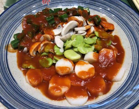 与闺蜜一起再次逛花乡奥莱村,第二次在那家小馆午餐。 就餐人不多,大厅有很多空位子。那家小馆的菜单有些了调整,与其他店差不多。尝试了米粉肉,没想到还挺香的。带鱼没有想象的好。非常养生的蔬菜拼盘倒是漂亮,里面有蚕豆,山药,口蘑和秋葵,就是浇汁为番茄酱,对于食肉的或重口味的算是个调剂吧。