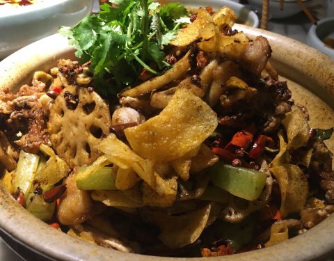 大悦城的辛香汇是升级版了,叫锦里,十一去排了好久的队。这么多年水准一直在啊,基本每道菜都没有雷点,口水鸡,橙香土豆泥还在摆盘上下了功夫。那天的宫保虾球面粉裹的有点湿,更他们反映了马上重抄了一盘。