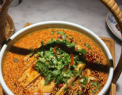 这家店刚入驻魔都的时候那叫一个过,曾经跨年那天跟同事们一起去,由于人多只能大桌,足足等了五个小时也是疯狂。他们家的菜辣度都经过改良,看起来红彤彤一片其实并不太辣,味道也是蛮好的。