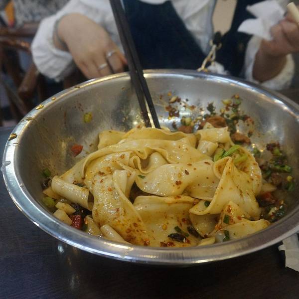 拿到我面前的时候我整个人都傻了,干饭人吃饭得用盆?tmd根本不是用碗装的,就用个钢制的脸盆装着。至于裤带面那我觉得真是见笑了,叫裤头面还差不多,巨粗一根,比裤带粗多...爱骅裤带面馆(biangbiang面7分)20元