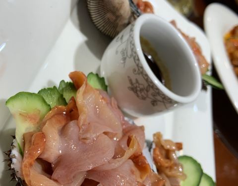 大连人一般常见菜:全家福、腰果虾仁、咕咾肉、溜鱼片、蟹、蚬子、鱿鱼、虾球、焖子等海鲜居多