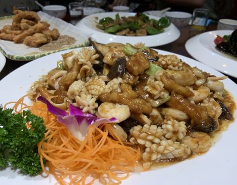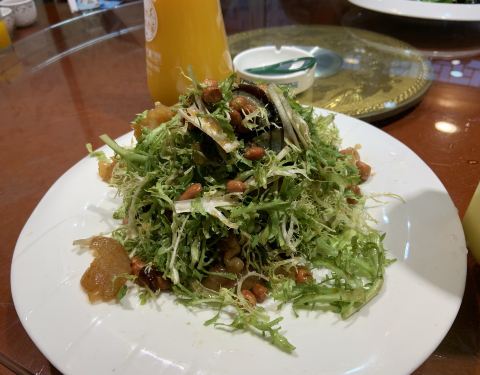 家里人口增多之后,这家餐厅成了聚会定点了,离爷爷家近,貌似有公交车站站点,交通算便利,门口也有停车位。 好像在楼上,要爬楼梯,如果有电梯就更好了,方便老人和婴儿车。 大连人一般常见菜:全家福、腰果虾仁、咕咾肉、溜鱼片、蟹、蚬子、鱿鱼、虾球、焖子等海鲜居多。 主食饺子、包子居多。