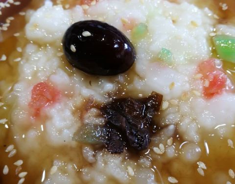 ...冰稀饭,虽然时间放久了已经没有冰感,但是味道不错,稀饭软糯,甜度适中,搭配小锅特别爽,下次还来