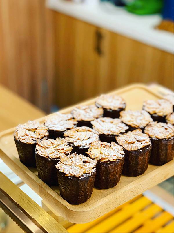 可露丽和舒芙蕾一直是我最喜欢的两款甜品。杭州有一家专门贩售可露丽的店铺,真的有点惊喜~ 一个个精巧可爱的可露丽,整齐摆放在柜台里,都想尝尝,点单的时候纠结的不行。 「伯爵红茶」 经过长时间的低温熟成,外层脆壳呈现出了极为诱人的焦糖色泽,内部蓬松柔软。切面很漂亮,蜂窝状的孔洞非常明显。淡淡的茶香,配合上层的杏仁,甜度较低,清新淡雅的味道我特别喜欢! 「肉桂苹果」 肉桂的味道其实并不浓郁,外层的糖霜甜度偏高,苹果果肉配在一起吃可以降低一点甜度,但效果有限。不耐甜星人建议这款心情再调整一下甜度。 对于专注的店铺,更多的是期待。每个口味都吃过来,成为店里的常客,也是一个小愿望呢!