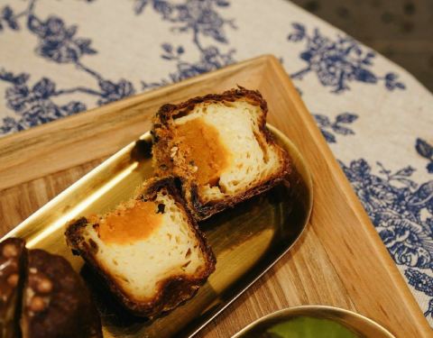 ▫️咸蛋黄肉松 不愧是网红馅 往哪里塞都合适。沙沙的口感完全融合在里面 甜中带咸居然有点好吃 ▫️焦糖洋梨 这个新口味也有点酷 夹馅太清爽了。 ▫️伯爵红茶 因为怕甜所以偏爱茶味的 伯爵红茶这个吃起来神似浓浓的奶茶味呀。表面一层烤脆的杏仁片。 ▫️抹茶 说改良版本的加了红豆馅 买完切开一看也没有啊 还是纯粹的抹茶味更受欢迎 所以红豆馅又没了。挺好挺好 加了红豆又会甜啦 外壳脆脆的很ok 焦糖味道浓郁而不甜腻 内馅气孔饱满 但还是偏湿软了些。 可能是为了加馅料 他家可露丽个头都好大好大 能吃饱的那种 从造型到口感都这么可爱的甜品 反正我是爱了