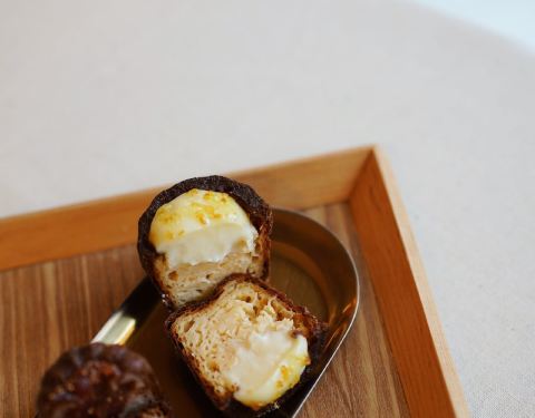 「伯爵红茶可露丽」 切开后细看分布着点点的红茶碎 顶部的杏仁片偏甜 下部分脆壳内是软软糯糯 焦香包裹着淡淡的伯爵茶香 「桂花酒酿圆子可露丽」 听到就想get的酒酿风味 不突兀的酸甜酒酿 加热后圆子可以拉好长的丝儿 可露丽部分原味就很好吃呀。