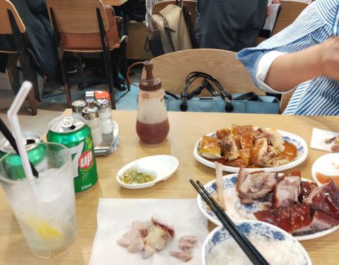 棋哥烧鹅餐室 肉质超棒鲜嫩多汁又不会太咸甜 烧鹅叉烧和烧腩仔都一级棒 很多当地人来吃 一个套餐58港币送一杯饮料 (热饮任选/冰镇+$3) 在香港差不多算工作餐水准 鸳鸯和冻柠都超正 亲爱的小伙伴们不要错过咯