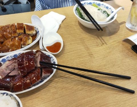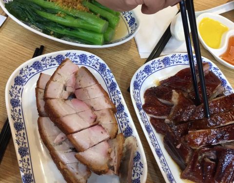 总之,香港的烧鹅肉质发干,肉皮不酥不脆,一口咬下去,皮咬不断。而且越吃越腻,几乎断了我对烧鹅的执念