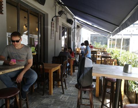 周末的时候去这家用餐,是下午时间,没有预约,也有座位~ [环境]餐厅环境还是蛮轻松的,室内室外都有座位,室外空间比较小点~ [服务]工作人员服务还OK,也算有需求都满足吧,主动性上有小小的欠缺~ 食物味道还不错,量不小~