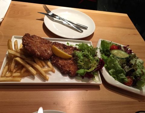 圣诞期间,门口空地有集市,气氛很好。逛完进店内吃晚饭,猪排很不错,好大好大,幸好另外点的是小吃份量的香肠。热红酒,40元一杯,味道还好。还有活动,周一猪肘夜,周二猪排,周三牛排。