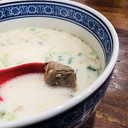 「羊杂汤」山东羊汤一绝,他家这个更是登峰造极,浓稠的一碗奶汤,入嘴却十分清冽甘甜,如果放些白胡椒,就跟大姑娘化了淡妆似的,更出彩了~