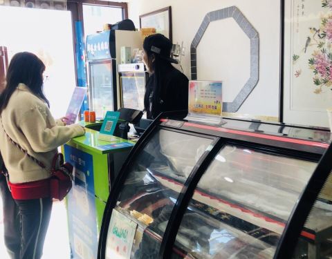 - 门店位置就在 绿地中心后面 跟着导航很好找,进门买单递给师傅票 ,师傅看票做烧饼和羊汤