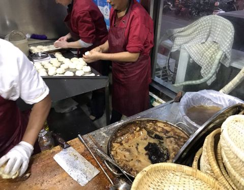 午餐时段烧饼都是提前做的,肉也早就煮好的,所以这个一般买牛肉烧饼还不至于等待太久。要是午餐正点就要等很久了,经常有一人要一堆的情况出现。现在的牛肉烧饼没有以前好吃了,煮肉和浸泡时间不够,牛肉入味有欠缺,香气和咸度不够。还是有些遗憾的。