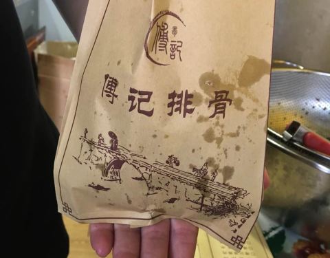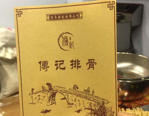 在点评网上秒杀到的小份排骨,价格相当便宜,趁着到建设路逛耍就过来领。还差10分钟到5点,店员说得等到5点才能领。我又去其他地方吃了东西过来看到门口排了两三个人。因为之前看网上介绍这家才是资格的傅记排骨...