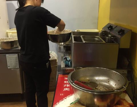 排骨太棒了 。炸排骨的姐姐很耐心 、
