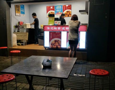 在点评网上秒杀到的小份排骨,价格相当便宜,趁着到建设路逛耍就过来领。还差10分钟到5点,店员说得等到5点才能领。我又去其他地方吃了东西过来看到门口排了两三个人。因为之前看网上介绍这家才是资格的傅记排骨...在点评网上秒杀到的小份排骨,价格相当便宜,趁着到建设路逛耍就过来领。还差10分钟到5点,店员说得等到5点才能领。我又去其他地方吃了东西过来看到门口排了两三个人。因为之前看网上介绍这家才是资格的傅记排骨,隔壁大概几十米远是仿的,结果假的那家生意居然更好,起码排了10多人。有个胖店员问要什么味道,就要的麻辣味。排骨炸的火候还把握得不错,有点香又不会太干,里面还有几个鸡排还可以。路过的时候来尝尝当小吃还是可以的。