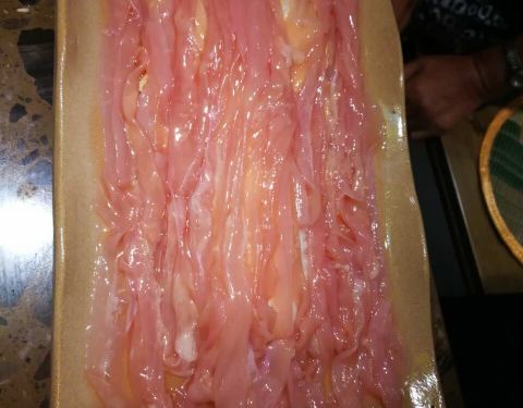 应该是正宗的重庆火锅,第一天开业打折,人声鼎沸,只有香油没有麻酱料,天津人可能还是会有些不习惯。