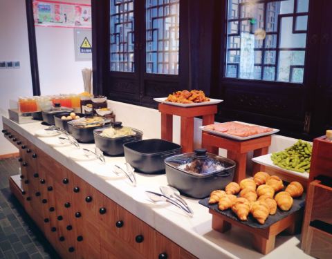 住过多家花间堂这里的早餐是最普通的,餐厅不大,食物也不多,更谈不上精致了,热菜没几个,其中蔬菜只有一个,牛奶也只有一种,并不像其他店有脱脂全脂之分,色拉类的也没有,不过倒是有现做的鸡蛋饼,环境清静...