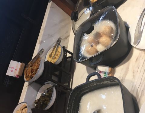 住过多家花间堂这里的早餐是最普通的,餐厅不大,食物也不多,更谈不上精致了,热菜没几个,其中蔬菜只有一个,牛奶也只有一种,并不像其他店有脱脂全脂之分,色拉类的也没有,不过倒是有现做的鸡蛋饼,环境清静舒适,感觉这个餐厅更适合下午茶的氛围。