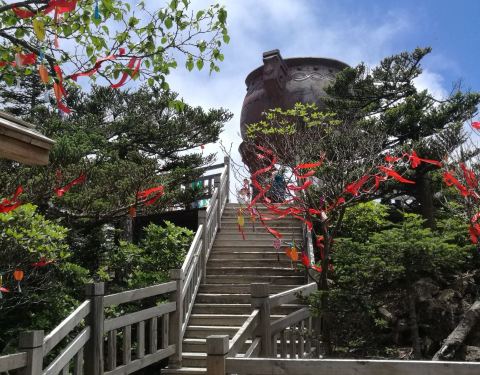 一八年7月7日我们耒到景区神农顶,一下车看到醒目的神农顶,和华中屋脊的地标,游人相继照象留念,开始前行,一直走到青云梯,可看到一片停车场,向前行不远处就是登顶阶梯,游人开始登顶了,我们十点十分开始登顶的第一步,那天天气真好,蓝天白云,不冷不热慢慢的到了499步,前行慢的匀速前行,到了699,999,1699这时人很累,我们继续前行,2099,这时前行却实要有毅力,我们速度更慢了,爬到2999步时已是中午十二点钟,用时两个多小时。到顶的心情无比高兴看到海拨三千一百零六点二的数字,我们挑战胜利,感谢那些鼓午我们的年青游客,一路上给我们加油。我们看到了那个大鼎,这才是真正的神农顶,顶上的风景太美,加上蓝天白云美得无法形容,美不胜收。整个顶上的游客兴致很高。中午一点十分我们开始下山了,由于我们的高兴和激动忘记了我们一路的累和辛苦。下午五点钟回到驻地特色农家。