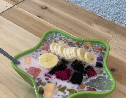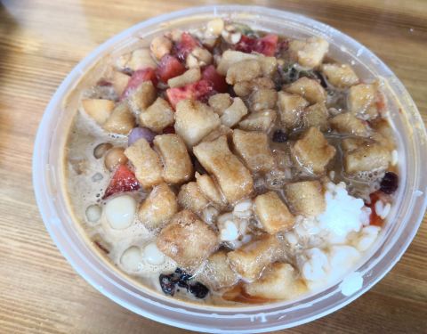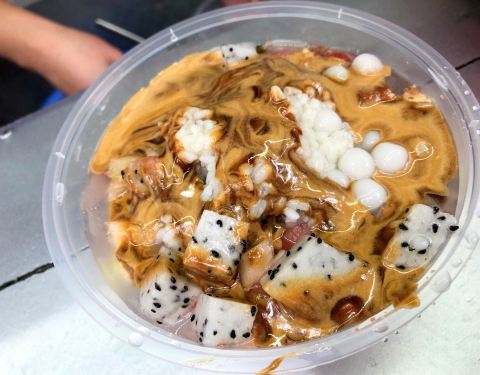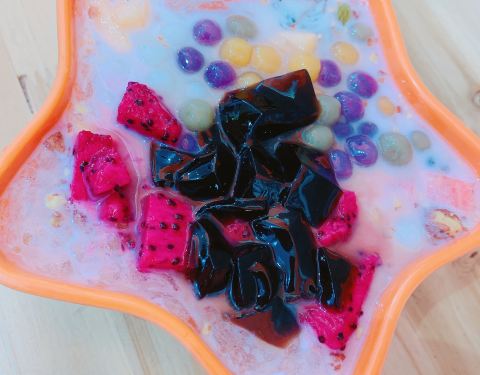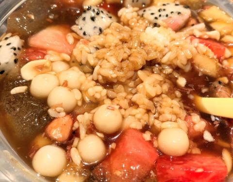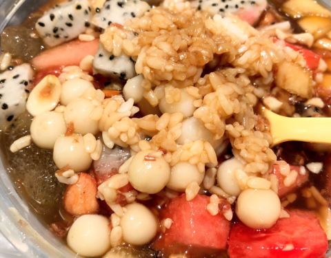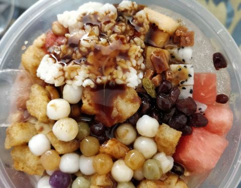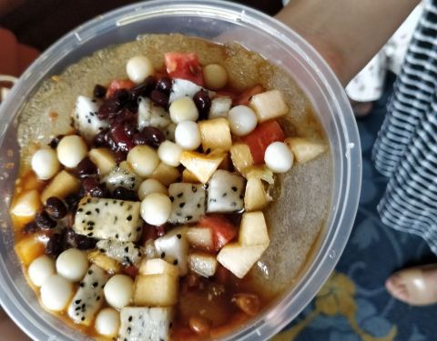 吃了钵钵鸡过来买了一份冰粉。确实好吃呀!【醪糟花式冰粉】才6元啊!没想到料这么足!冰粉是手搓冰粉,红糖也是浓成酱酱的翻砂红糖!就这一份光是手工冰粉加翻砂红糖还不加其他料在成都居然都可以卖到15元,瞬间...吃了钵钵鸡过来买了一份冰粉。确实好吃呀!【醪糟花式冰粉】才6元啊!没想到料这么足!冰粉是手搓冰粉,红糖也是浓成酱酱的翻砂红糖!就这一份光是手工冰粉加翻砂红糖还不加其他料在成都居然都可以卖到15元,瞬间觉得这里的性价比不要太高!水果有西瓜,哈密瓜,火龙果,都很新鲜,小丸子很软糯,醪糟味道很浓郁,冰粉很软滑,红糖自然不用说,最是棒棒哒!