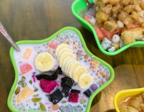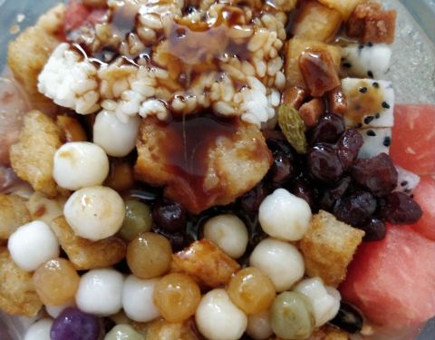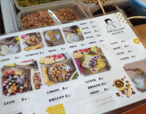 - 真的是爆满,种类多,而且便宜,三个人点了四种冰粉,一个土豆,很撑,个人喜欢花式西米露,和丈母娘...