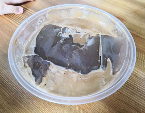 点了外卖,二十分钟就送到酒店大堂了,看上去冰粉已经成了配角,各种配料成了主角,一碗下去,饭都不用吃了,红糖单独包装,很浓的糖浆。
