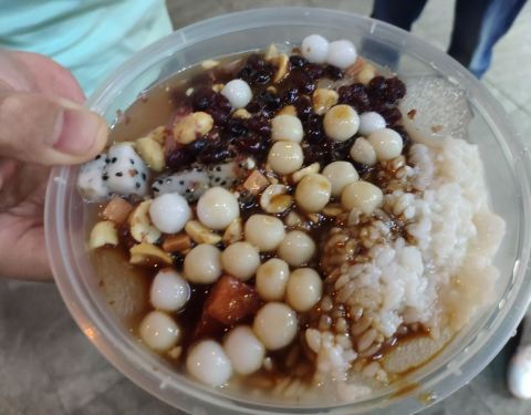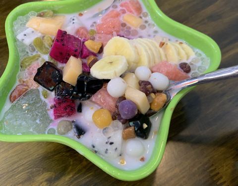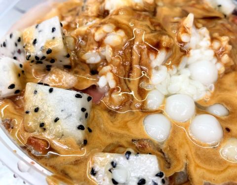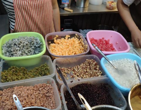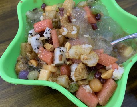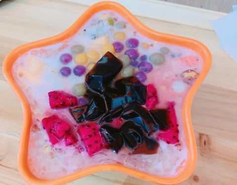 真的是爆满,种类多,而且便宜,三个人点了四种冰粉,一个土豆,很撑,个人喜欢花式西米露,和丈母娘...