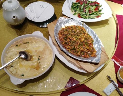 优点: 1. 菜份量不错,口味还行,比较新鲜; 2. 餐厅装修的不错。 缺点: 1. 菜价较贵,比如一份地三鲜(土豆茄子豆角条)要48元; 2. 初七去吃,说过年还是推套餐,拿个打印的白纸的套餐单子给我,我说我们两个大人实在吃不掉,服务员让我点套餐里面的菜,但没有单菜的标价,我坚持要原菜单才给我,说不点套餐会上菜慢一些,来的多的人就强推套餐,不给原菜单,实际套餐上菜也不快; 3. 喜欢集中服务,会把两桌不认识的比较少的人安排在一个包厢,散客桌上也不放茶壶,茶壶很节约; 4. 有婚宴或大型包场情况不接散单,我们因住在酒店,附近很荒为了方便就来这个二楼中餐厅吃,初八中午十二点半去,说在进行两场婚宴,如果我们愿意吃就等两点上菜,那个男经理就是一副我能怎么办,这情况就是这样的态度,又不是不让你吃,就是两点才能吃,毕竟婚宴拿下是这个部门的有利绩效,散客怎能解决是散客自己问题。为什么在有包场就无法给散客提供正常服务情况下不能提前告知住店房客呢,为什么连句道歉都没有,为什么不能给住客提供解决方案呢? 以上2、3、4点其实根本原因是酒店管理有问题,能看出强调部门和员工的表面短浅绩效,就是少支出,推套餐,多挣大单子,不重视部门协作,不重视散客小单,无酒店整体协作服务意识。