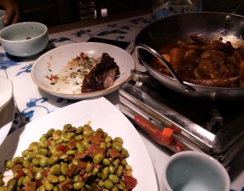 细节感觉立刻不好了!菜还行,点了特色蒜蓉虾和地锅鸡,蒸蛋,干锅花菜,小炒毛豆米