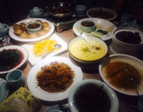 玉米元宵 地锅鸡 木耳山药 牛肉甩面 蒜蓉铁板虾 老卤豆腐 酱鸭头 京酱肉丝 剁椒鱼头 海鲜炒粉丝