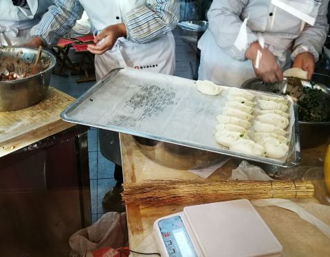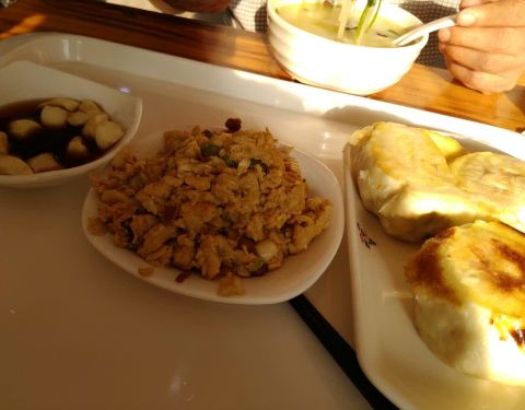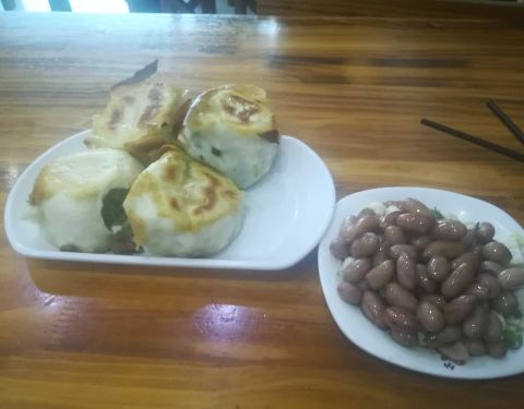 赵记外婆煎包的这家位于蓉花路上的店,就餐环境比较好,店里煎包馅料品种多样,有虾仁煎包、韭菜鸡蛋煎包,还有各种小咸菜和八宝粥,上饭速度快,厨房操作间可以看得见,放心吃。