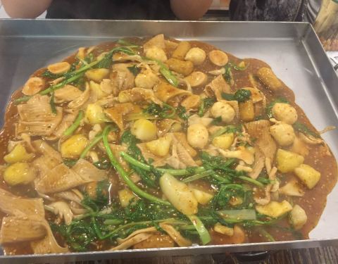 莫名而来的品尝美食,人均25左右吧!可以选择自己喜欢的菜品,小店不太大,但是人很多,主食有画卷,还可以放方便面,味道不错,还有炸串!推荐大家去试试,我是到鞍山旅游去吃的,很特别,以前没有见过这样吃的...